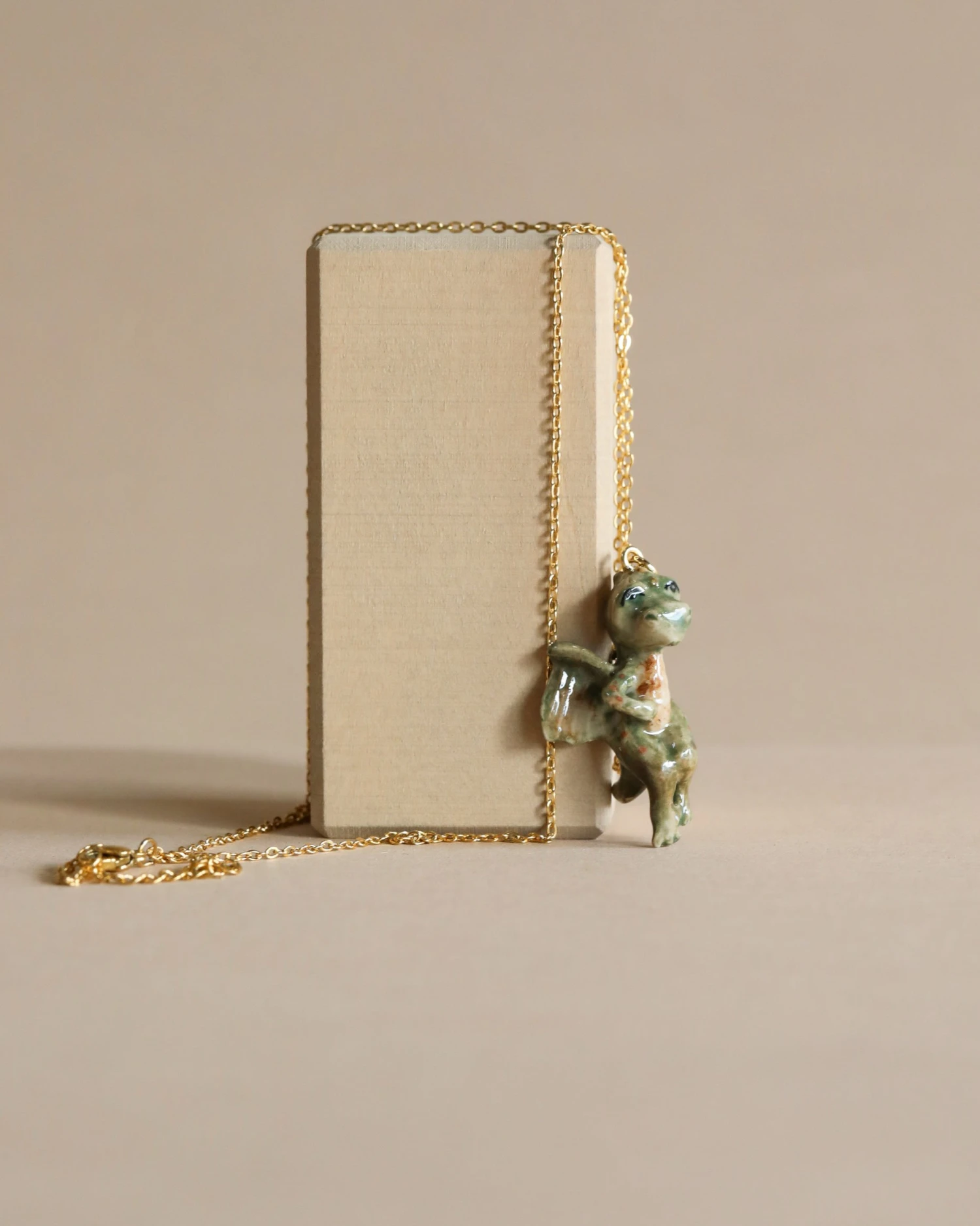 Unleash your inner enchantress with our limited-edition Baby Dragon Necklace! This handcrafted porcelain pendant features a fierce baby dragon that adds a spark of mystical fire to any ensemble. Strung on a delicate chain, this necklace is a versatile and captivating addition to both casual and elegant looks. Due to the handmade nature of this product, slight variations in color and design may occur, making each piece truly one-of-a-kind. Perfect for fantasy enthusiasts, dragon lovers, or anyone who appreciates the blend of fashion, artistry, and a touch of medieval magic.