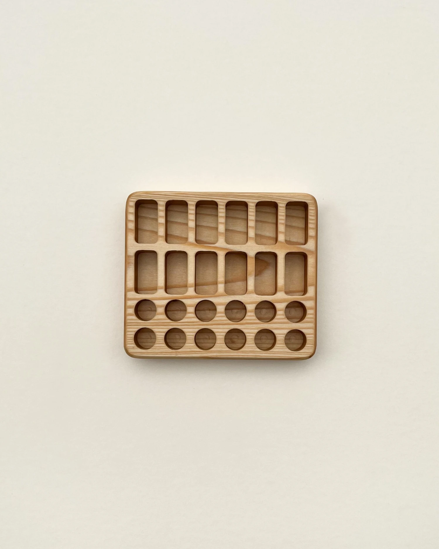 This crayon holder is designed specifically for Stockmar sticks and includes 12Â slots for sticks and 12Â slots for blocks.Â
