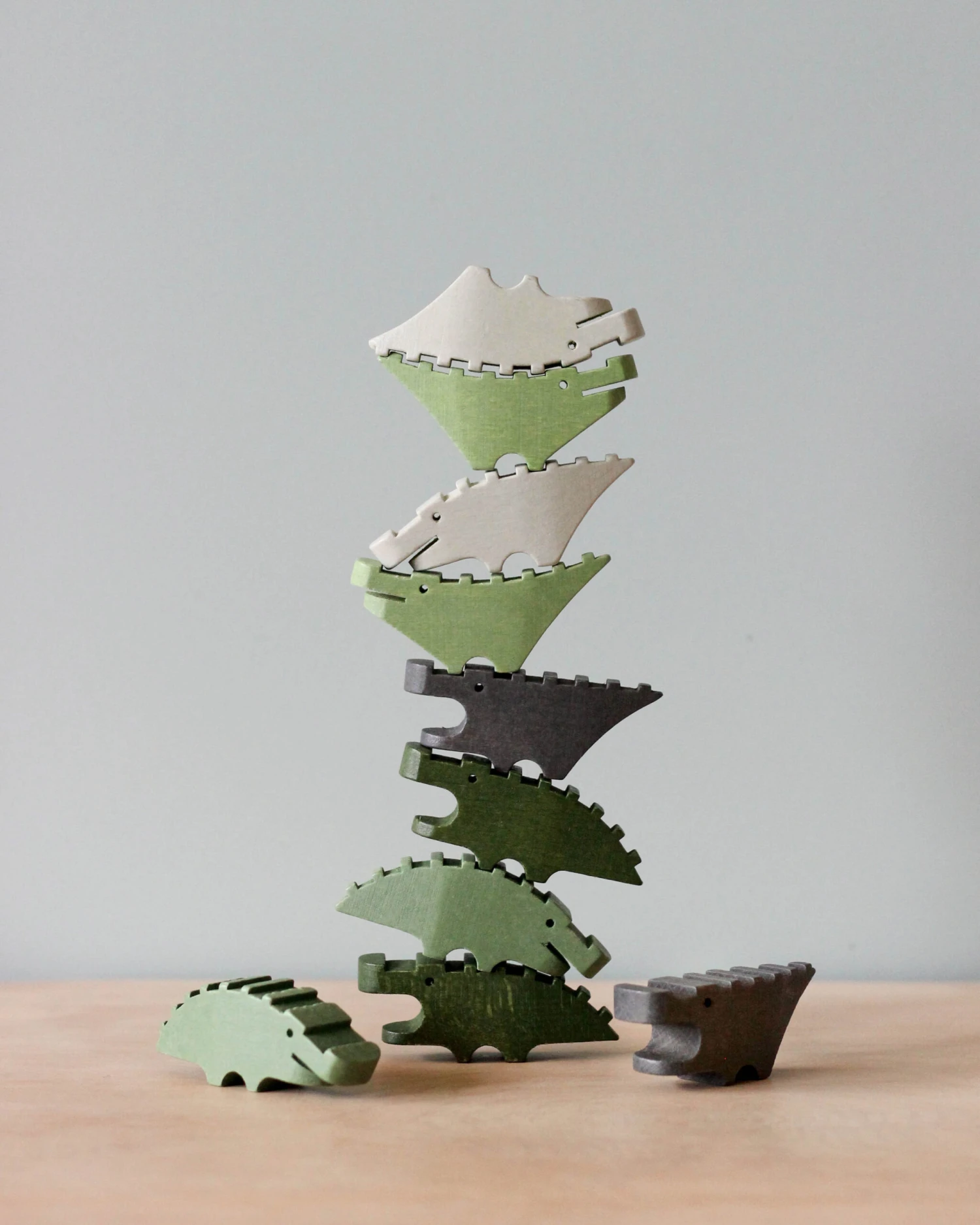 Wow-o-wow it’s a pile of crocodiles! This set of 10 little crocs are designed to nest and stack to build a tower of friendly crocs. Get snappy and use their mouths as cantilevers or simply interlock the notches on their backs. Need a bigger challenge? Add multiple sets to create a tall croc tower. After a while, you’ll be a crocodile stacking pro.