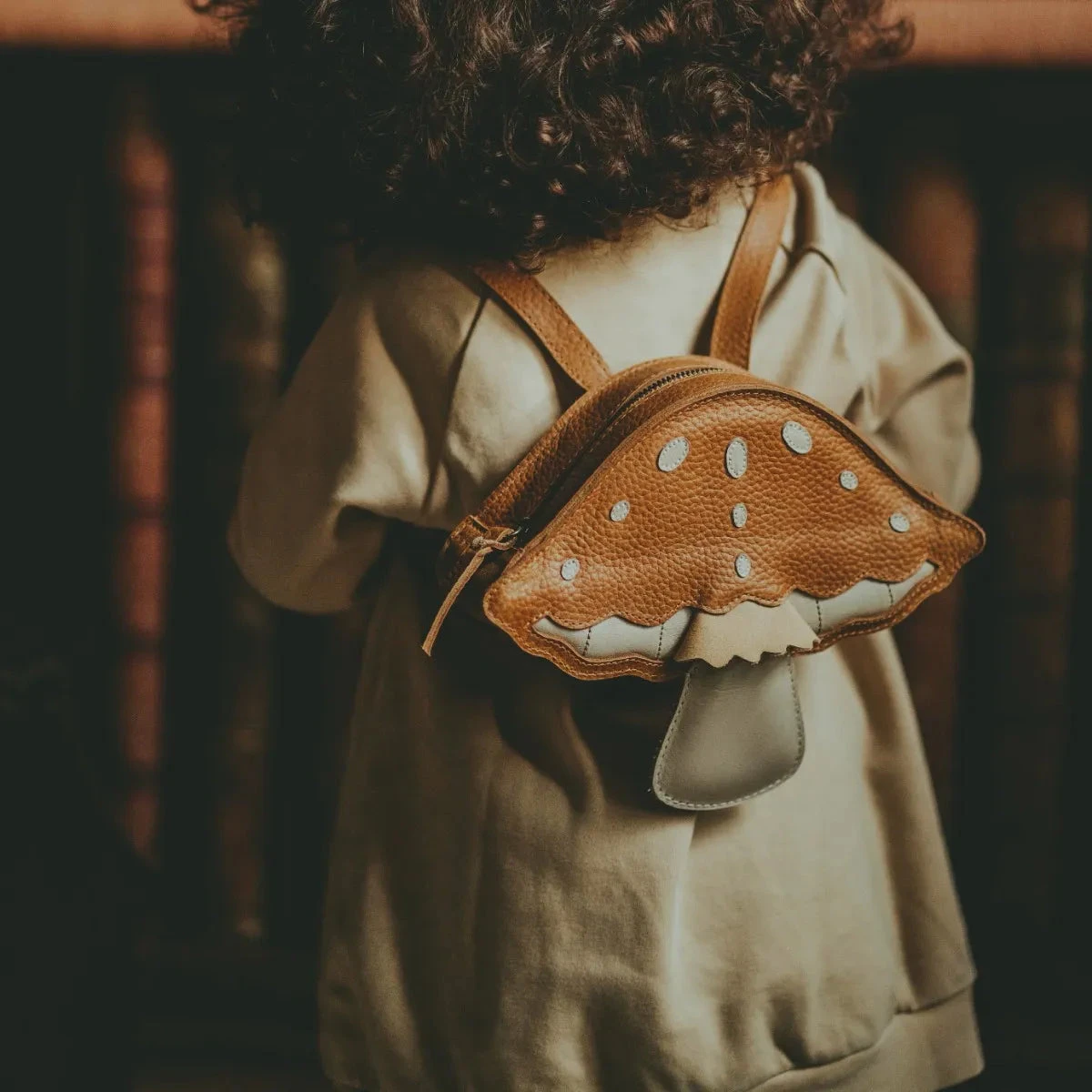 So mushroom for you in my heart! Get ready for exciting new adventures with the Tum backpack. Crafted with 100% premium leather, top and side zip fastenings and comfy adjustable leather straps. This backpack is an absolute must-have in every mini wardrobe. The playful, forest-inspired design will sparkle imagination and put a big smile on your little one’s face.. Â