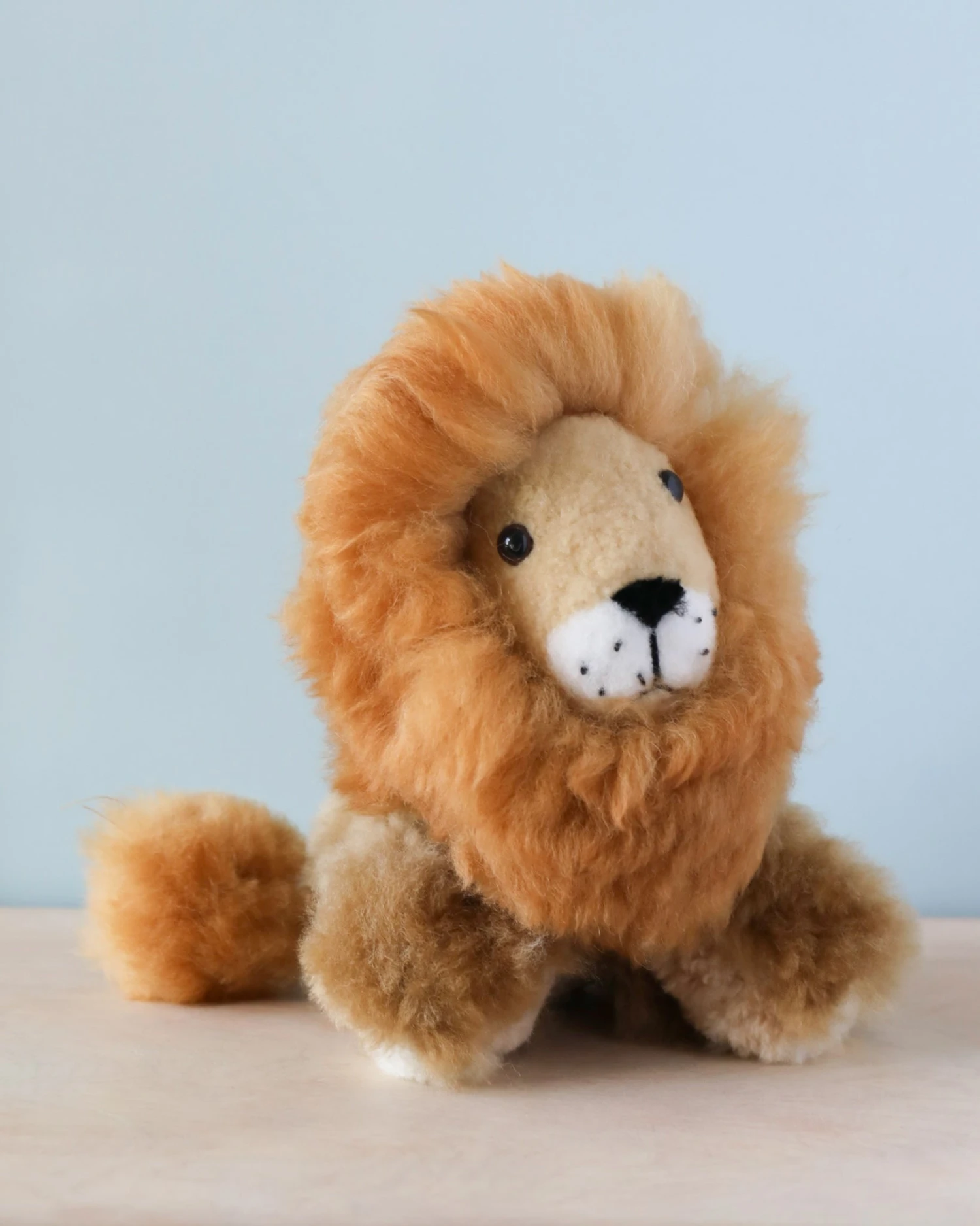 The charming and snuggle-worthy lion stuffed animal is handmade from 100% super-soft alpaca wool from the Highlands of Peru. This is definitely the softest stuffed animal you will ever touch. That sweet face and fluffy mane sure are irresistible! This adorable furry creature makes for a unique and luxurious present for a loved one, a cute cuddly companion for the couch, or a wonderful decorative element for any cozy space.