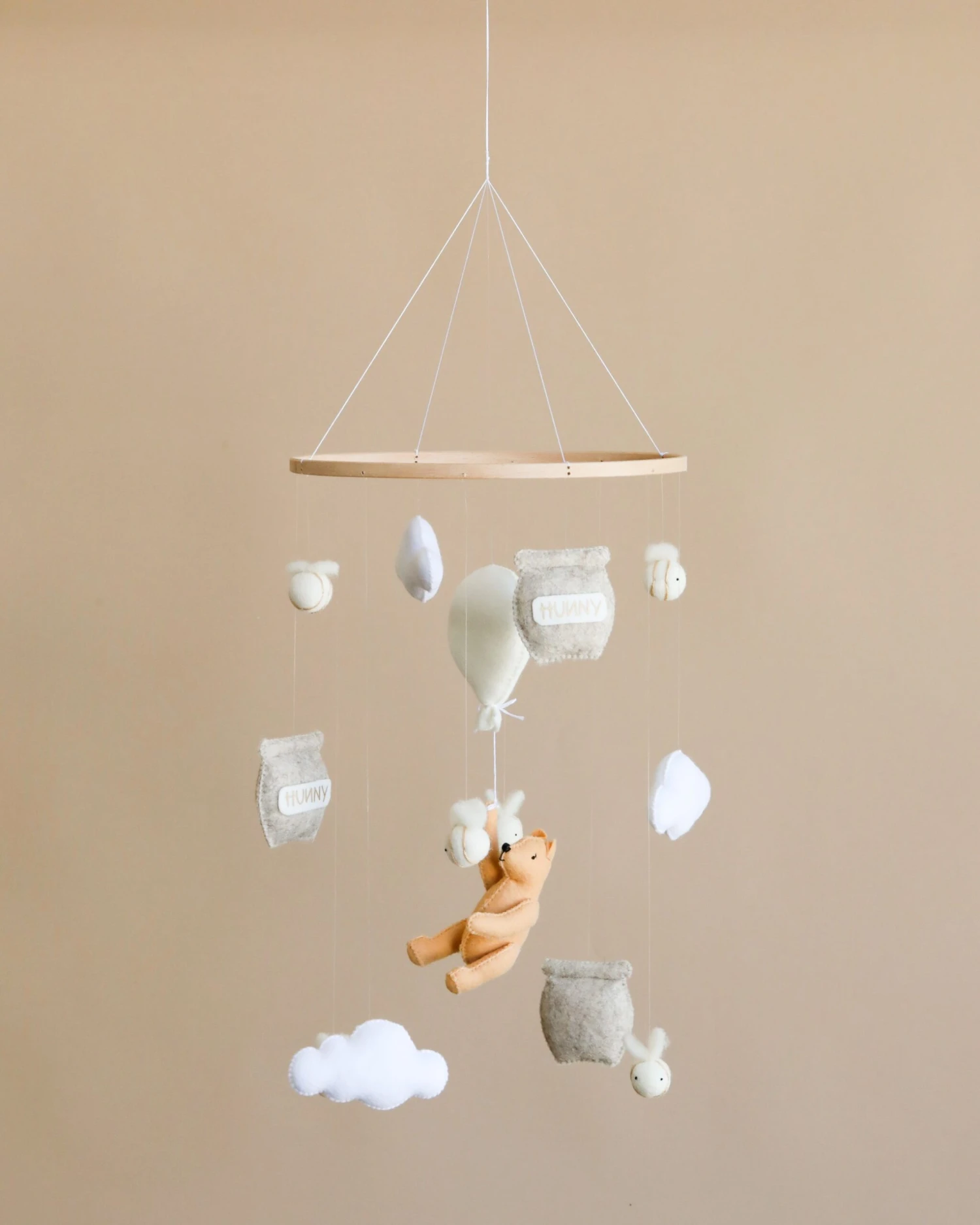 The mobiles are made to be suspended from the ceiling so you can adjust them out of reach as your little one. A hook that can be screwed directly into the ceiling is also included.