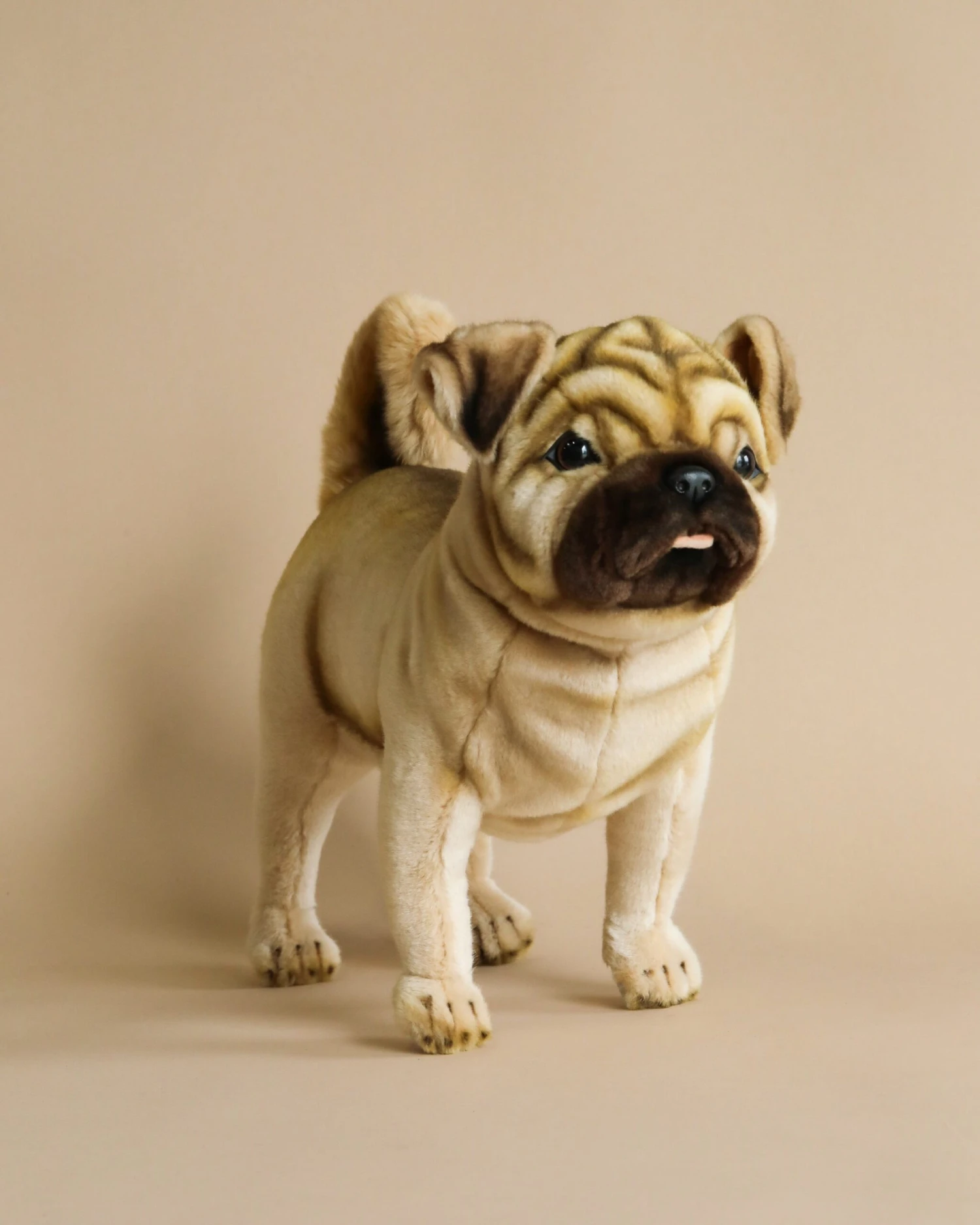 Artisans hand sew the animals “inside out”, an old world tradition that results in the mininization of seams, and their bodies are carefully “sculpted” to create “musculature” and “features” like movement in a walking or sitting position that are unique to each creature. On average, there are 42 separate pieces required to make each animal, that must be combined by a team of truly creative artists to create the distinctly realistic features that characterize HANSA animals. (Some animals have as many as 240 different parts!) Each animal is individually hand sewn, to give it a unique “personality”, there are more than 860 different fabrics and man-made furs from which the “coat” and “hides” are made, along with over 6000 sets of different eyes, whiskers, claws, noses, and related accessories allocated for creating these wonderful plush animals. Stuffing emphasizes careful attention to the placement of the highest quality man-made materials.