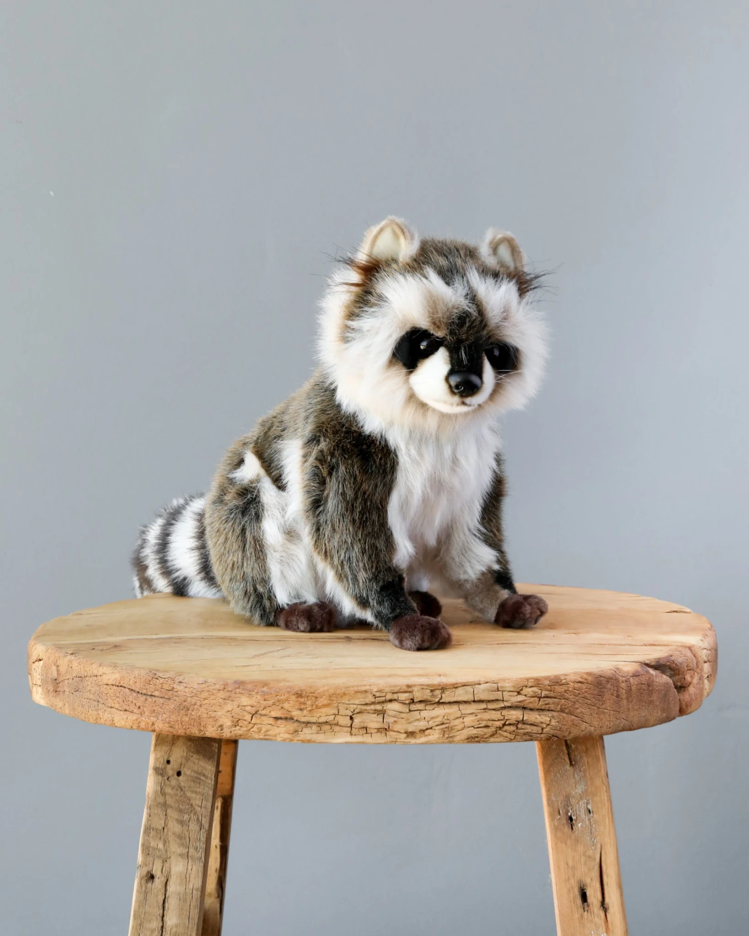 Artisans hand sew the animals “inside out”, an old world tradition that results in the mininization of seams, and their bodies are carefully “sculpted” to create “musculature” and “features” like movement in a walking or sitting position that are unique to each creature. On average, there are 42 separate pieces required to make each animal, that must be combined by a team of truly creative artists to create the distinctly realistic features that characterize HANSA animals. (Some animals have as many as 240 different parts!) Each animal is individually hand sewn, to give it a unique “personality”, there are more than 860 different fabrics and man-made furs from which the “coat” and “hides” are made, along with over 6000 sets of different eyes, whiskers, claws, noses, and related accessories allocated for creating these wonderful plush animals. Stuffing emphasizes careful attention to the placement of the highest quality man-made materials.