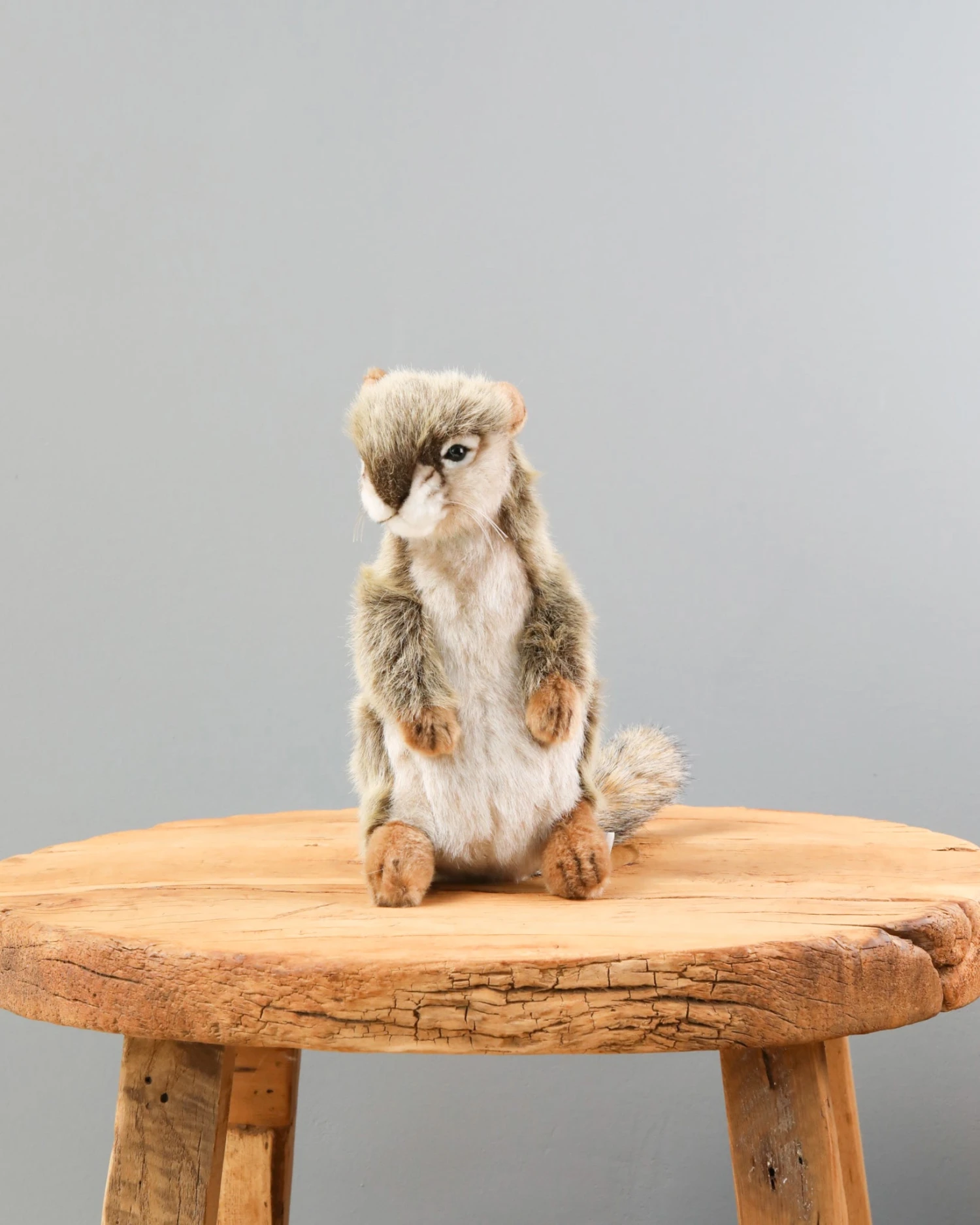 Artisan hand sew the animals “inside out”, an old world tradition that results in the mininization of seams, and their bodies are carefully “sculpted” to create “musculature” and “features” like movement in a walking or sitting position that are unique to each creature. On average, there are 42 separate pieces required to make each animal, that must be combined by a team of truly creative artists to create the distinctly realistic features that characterize HANSA animals. (Some animals have as many as 240 different parts!) Each animal is individually hand sewn, to give it a unique “personality”, there are more than 860 different fabrics and man-made furs from which the “coat” and “hides” are made, along with over 6000 sets of different eyes, whiskers, claws, noses, and related accessories allocated for creating these wonderful plush animals. Stuffing emphasizes careful attention to the placement of the highest quality man-made materials.
