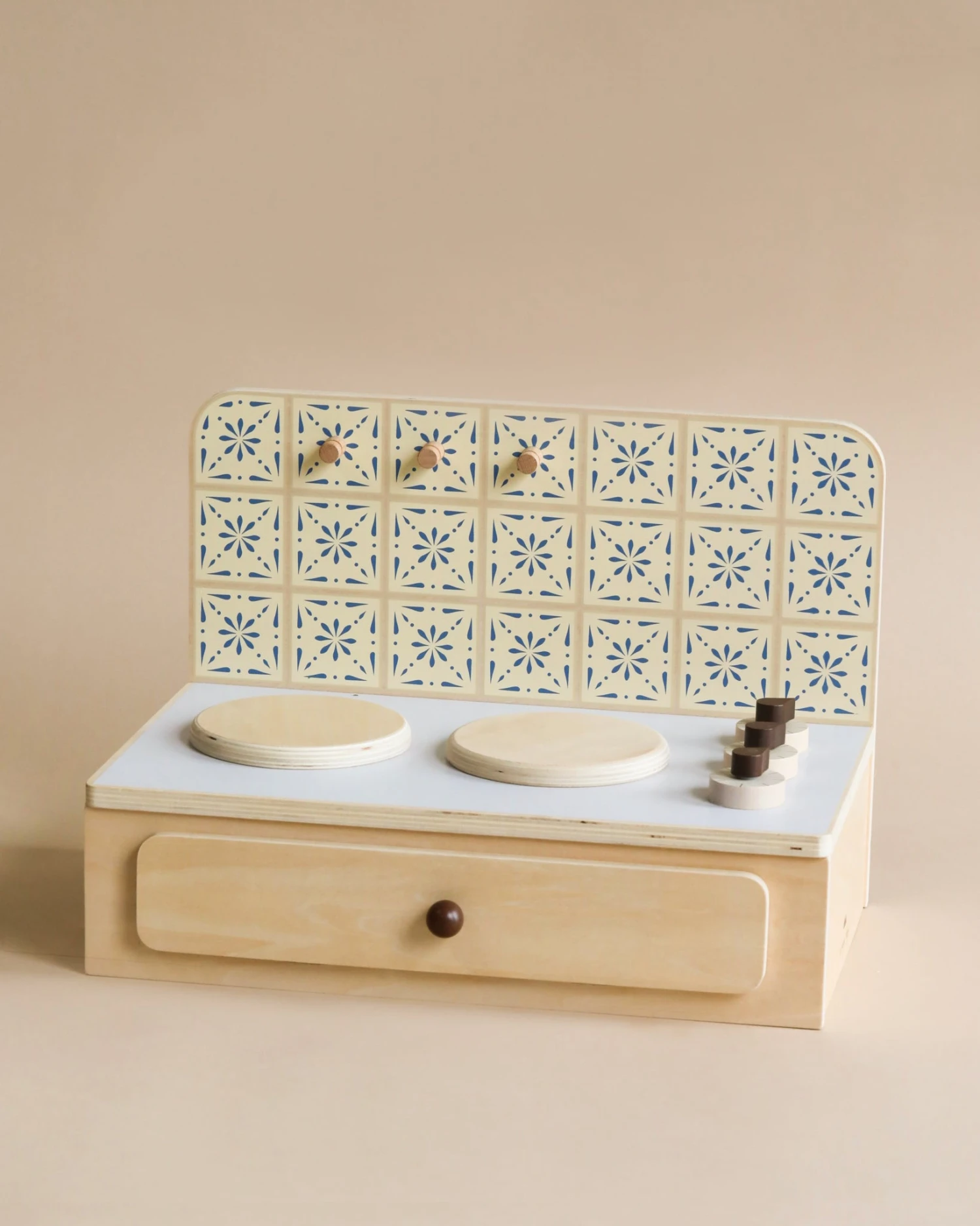 This beautiful wooden table kitchen is made with sustainable beech plywood and beechwood, and is a great addition to a play kitchen in small spaces.