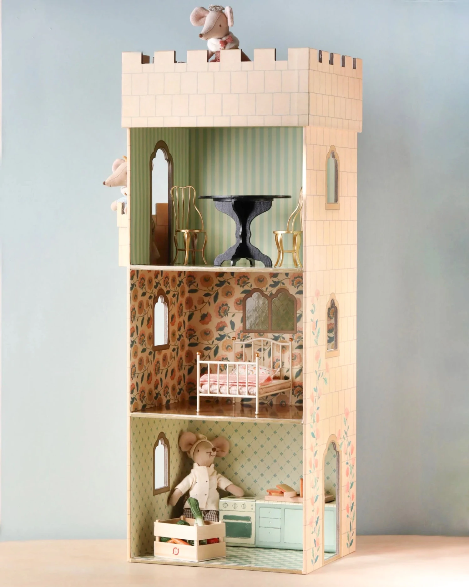 A beautiful castle for mice! It is made of sturdy cardboard covered in unique Maileg prints. Our amazing castle is designed specifically for big brother and sister mice, but smaller mice fit too. Adventures await, let the story begin!
