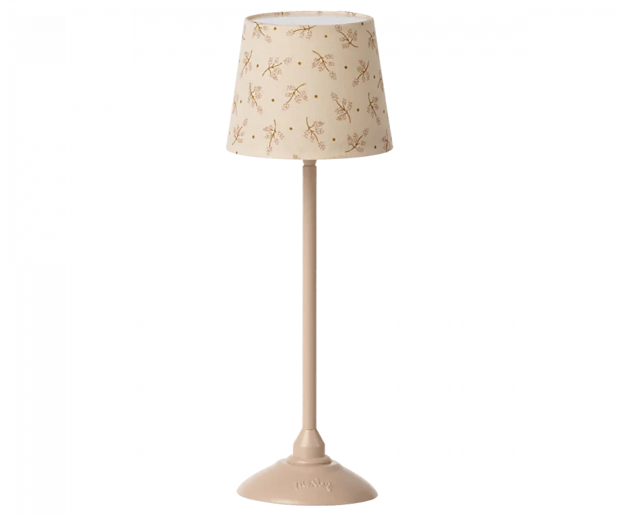 Our beautiful Maileg Miniature Floor lamp is a must have. The lamp will light up the room with a soft tone – remember to turn off the light when our friends go to bed. Battery included.Â