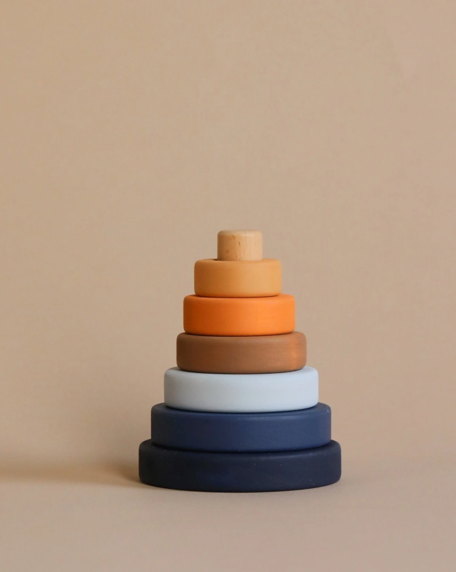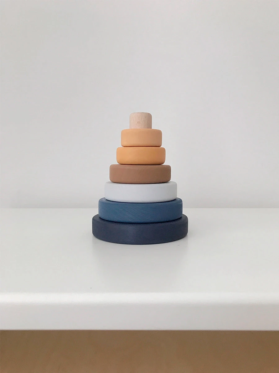 Handmade by Sabo Concept in Ukraine and painted with non-toxic, water-based paint. This stacking toy is great for hand-eye coordination.