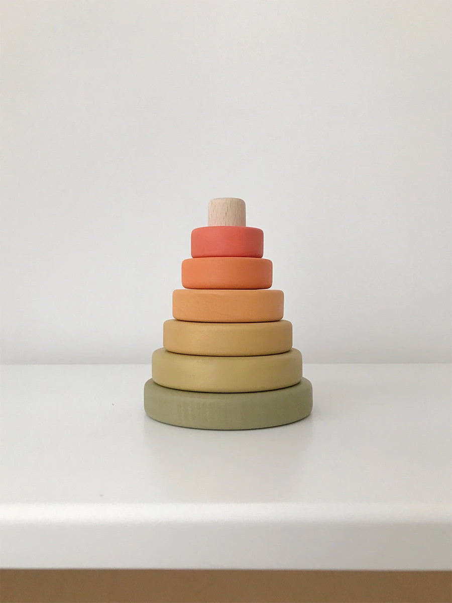 Handmade by Sabo Concept in Ukraine and painted with non-toxic, water-based paint. This stacking toy is great for hand-eye coordination.Â