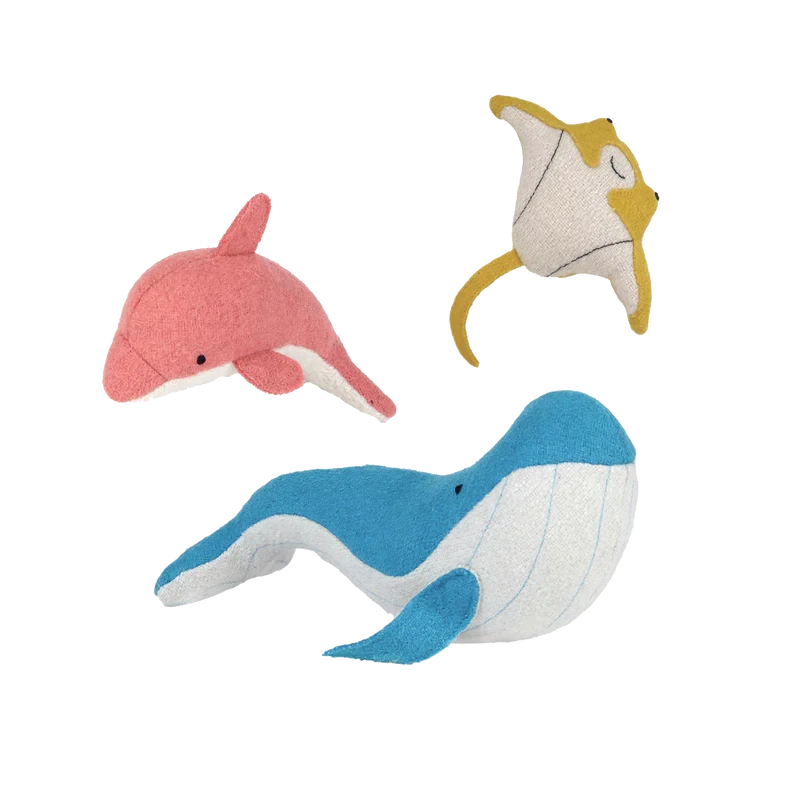 Handmade from a soft wool blend with embroidered features, these three Ocean friends are the perfect size for small hands and are wonderful prompts for hours of imaginative play.